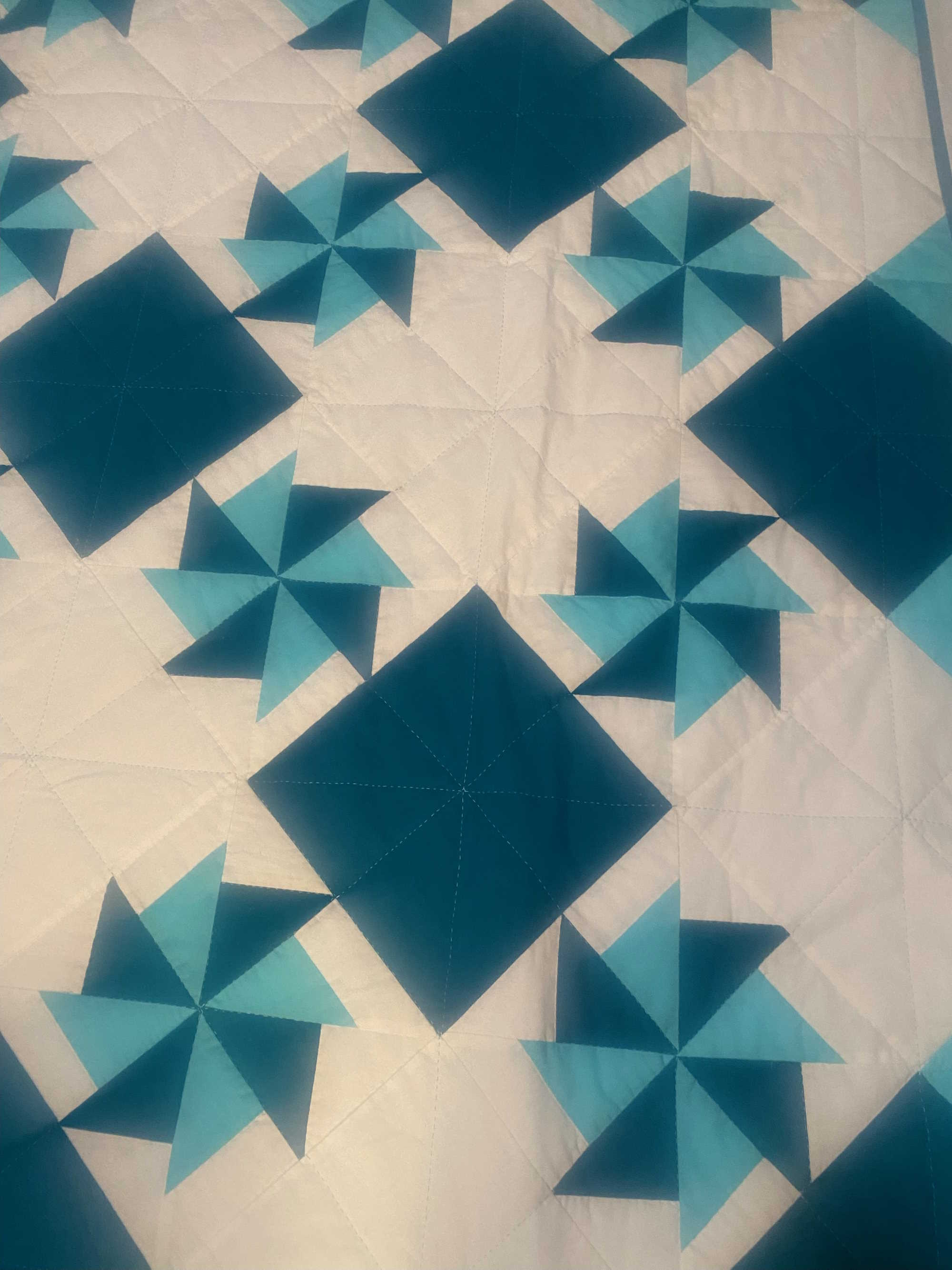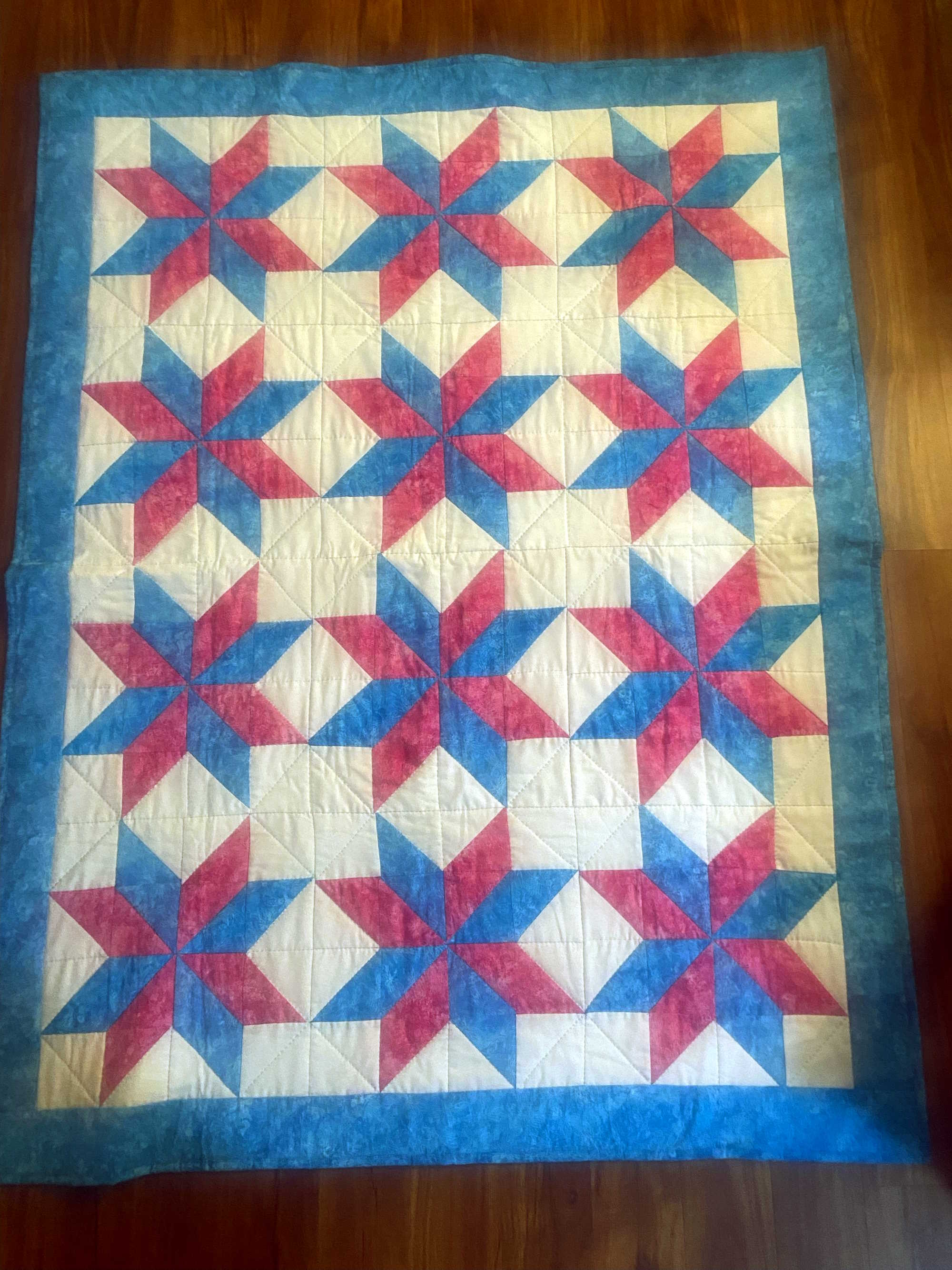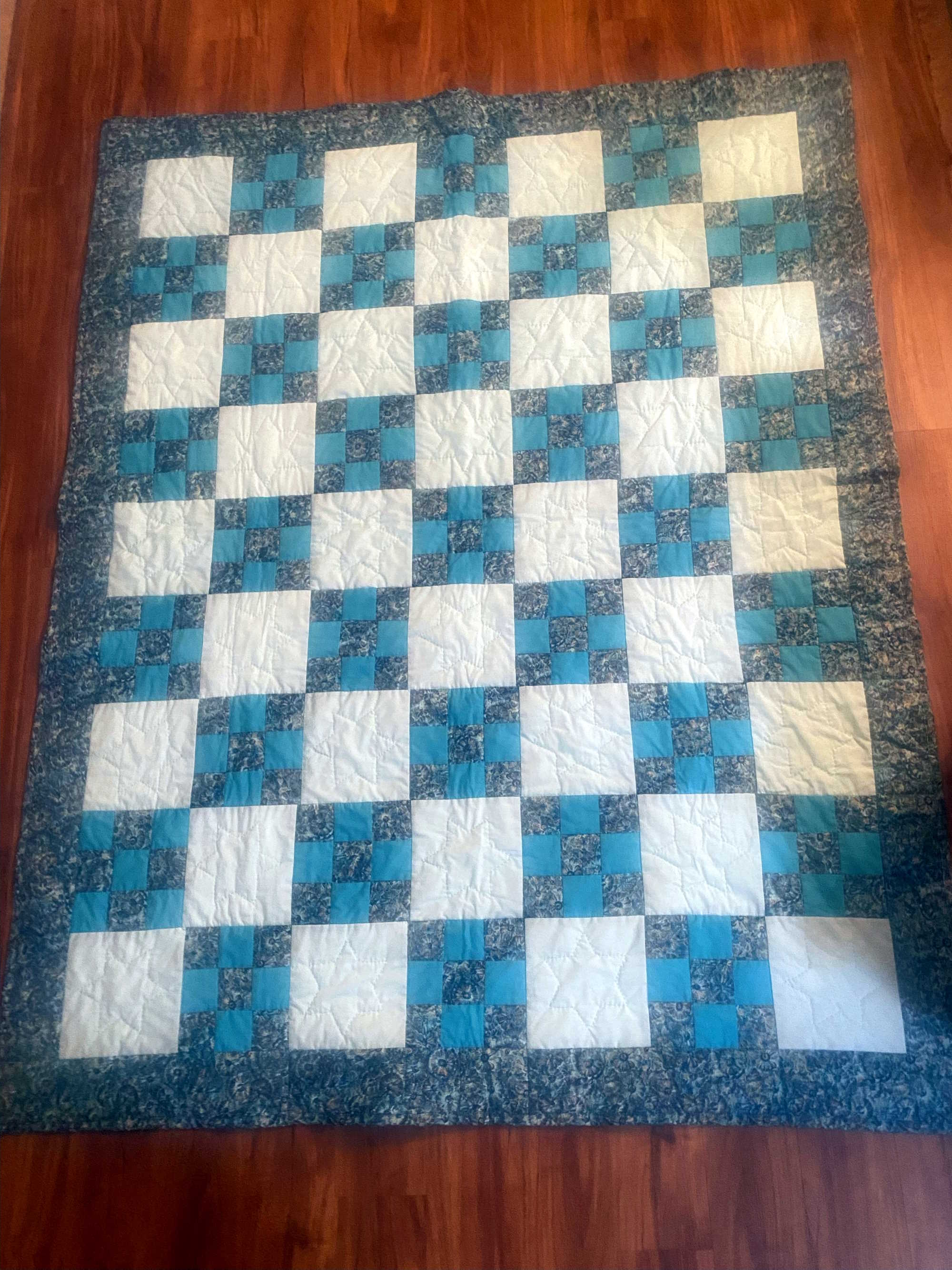 Notes: When I was three years old, the fish on this quilt bit me. I was jumping on the bed.